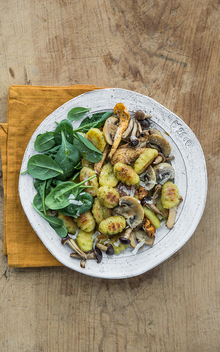 PFANNEN-GNOCCHI ROSMARIN MIT PIOPPINI-PILZEN UND FRISCHEM BABYSPINAT