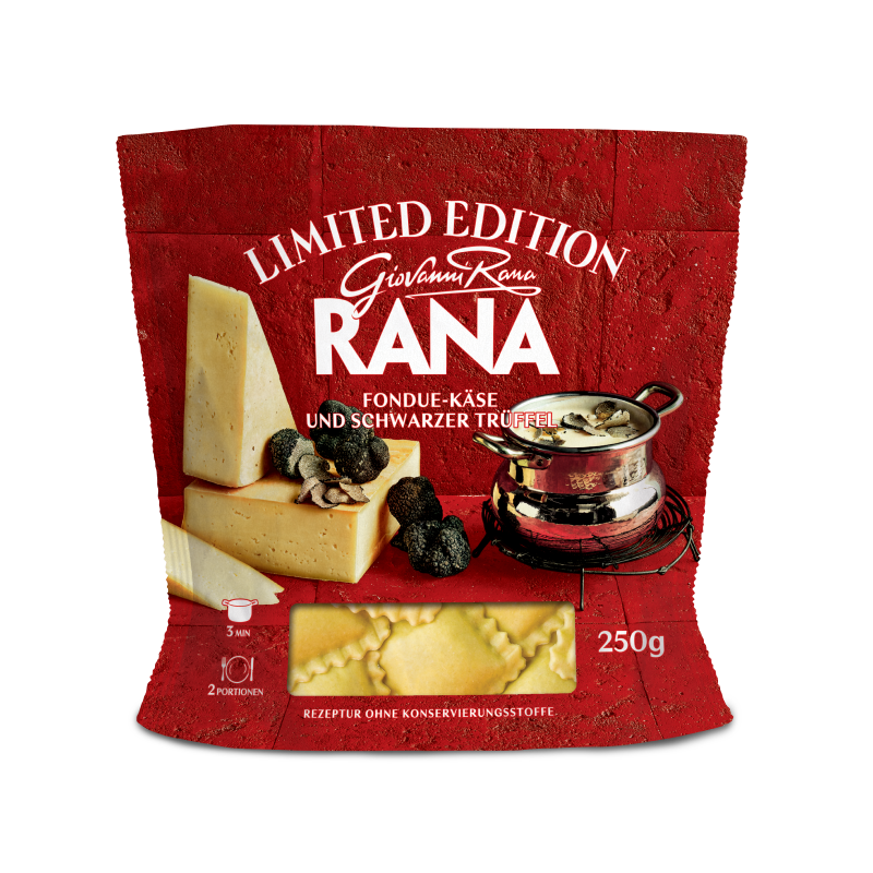 - 1 Packung Giovanni Rana Ravioli gefüllt mit Fondue-Käse und schwarzem Trüffel